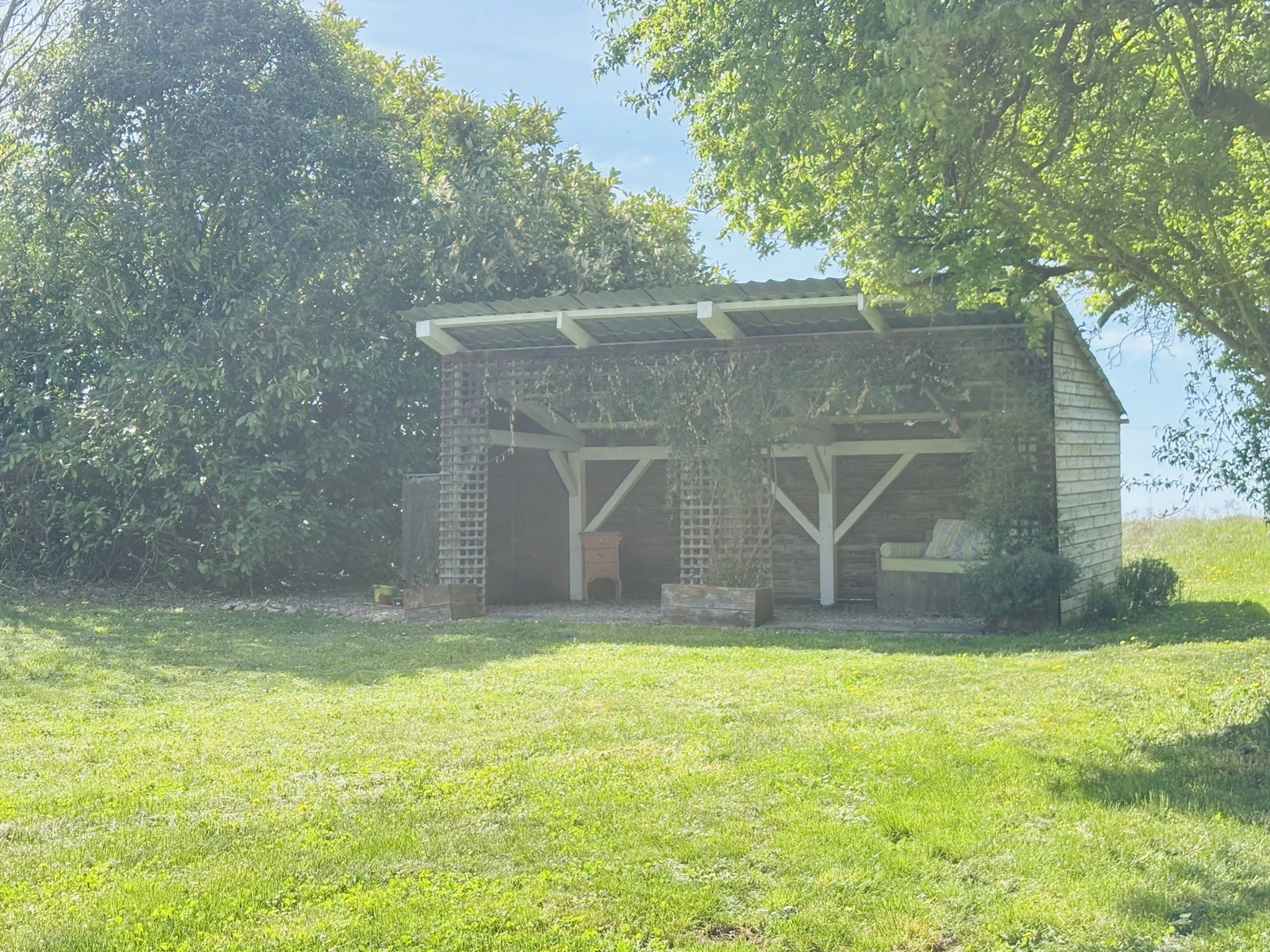Hangar ouvert et couvert à l'étage, permettant le stationnement de plusieurs véhicules